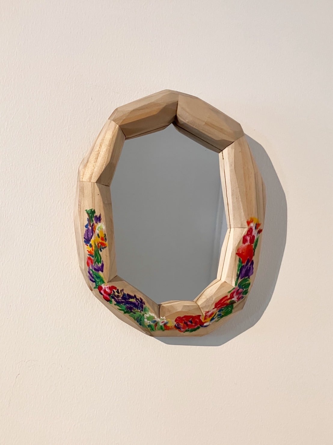 花の鏡にはふたつの使い方があり、自らを映す物、そしてもうひとつは鏡の手前に花を置いて花が自らを見つめるという意味合いも込めました