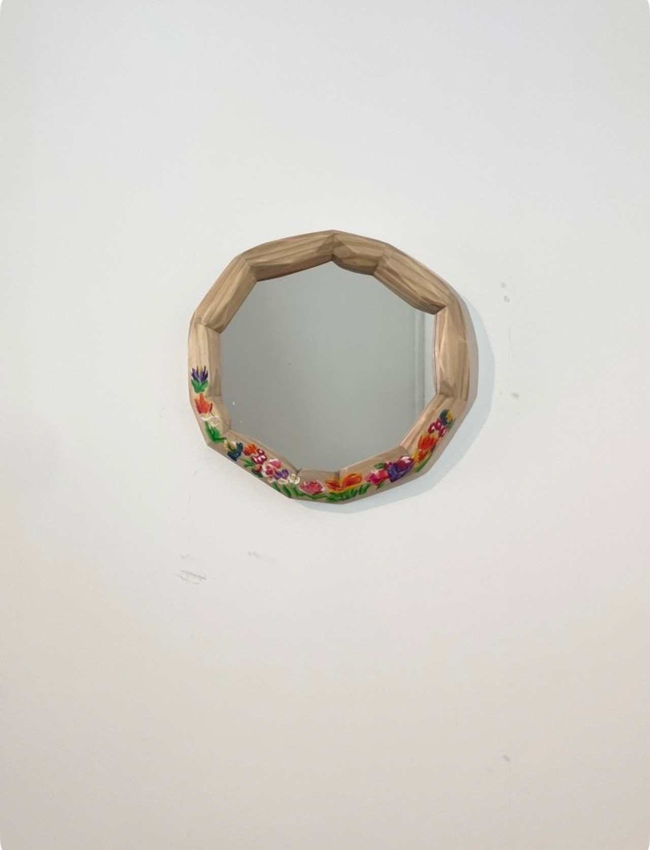 花の鏡にはふたつの使い方があり、自らを映す物、そしてもうひとつは鏡の手前に花を置いて花が自らを見つめるという意味合いも込めました